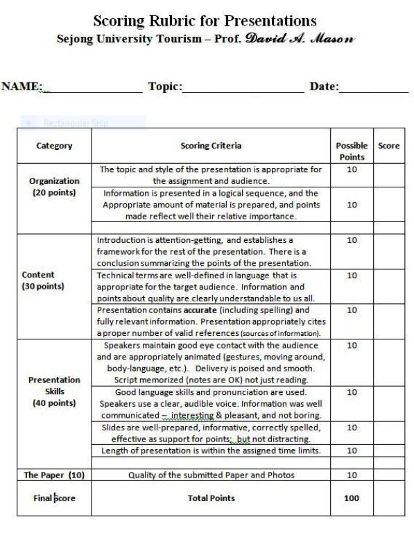 14. On both of these, Prof Mason will judge you on English accuracy and vocabulary, presentation skills, paper, professionalism and content quality (see below).