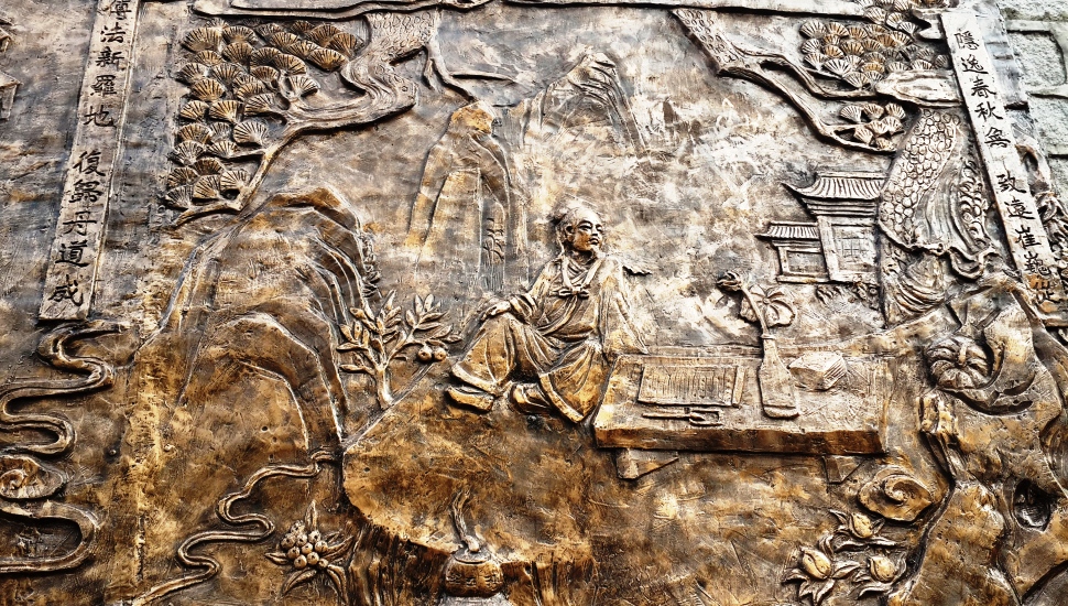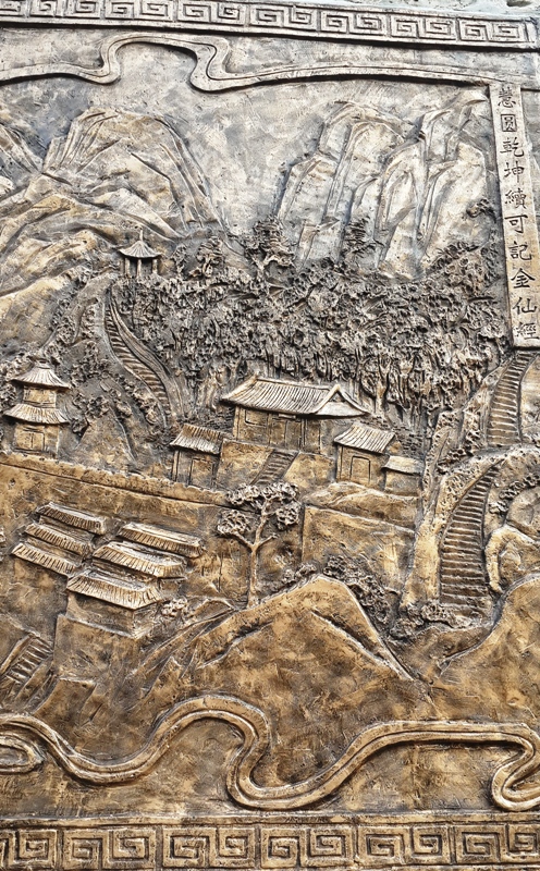 | These large bronze plaques show some biographical scenes from Kim Ga-gi's life; however I don't yet know the tales they depict and am not even sure what order they should be in! |