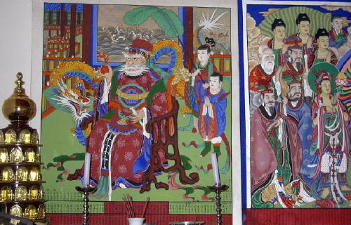 Chil-seong painting on a side-wall -- with the usual elongated head, but