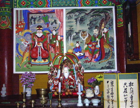 in Korea's folk-religion). They are all fronted by ceramic oil-lamps and little stone