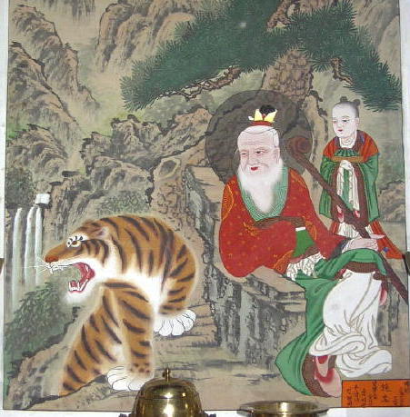 At Yong-ju-sa, also on Buk-byeong-san, the main San-shin seems to be winking, perhaps at the