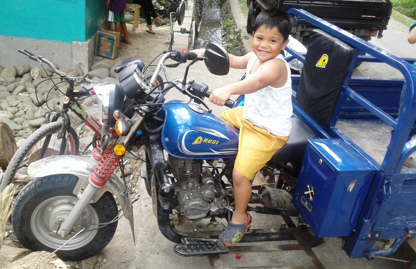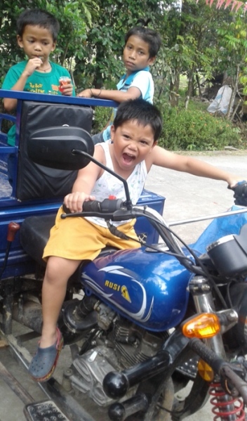 | The very useful new "Chariot" farm-vehicle, capable of carrying big loads on both rough steep mountain-roads and on the national highway -- with master-driver Davayn. |