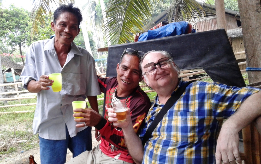 | Myself sharing some San Miguel beer with brother-in-law Selso and our truck-driver Welson, during the Omanod Fiesta on Feb. 22nd 2017 |
