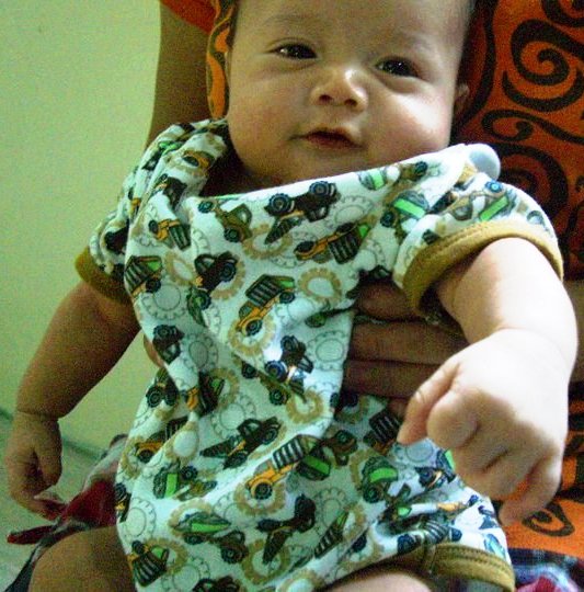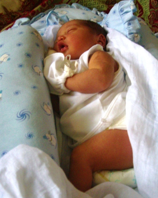 | 4 days after birth, with Mom that thing on his hand is for a series of innoculation-injections |