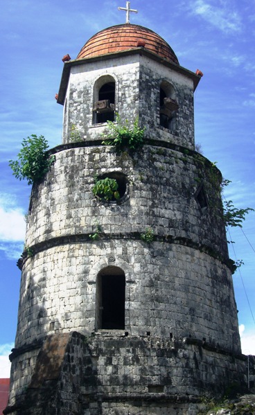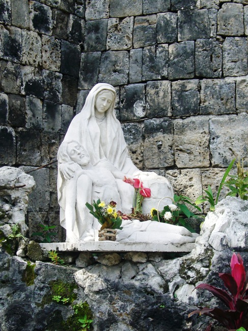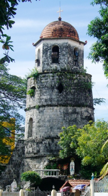 | Proud symbol of the city, the entire province: the old Belfry-Watch-Tower built in 1811, and its pieta shrine. According to legend Dumaguete was first named with the native word ‘daguit’ which means ‘to snatch / kidnap’, due to rampant raids by marauding muslim pirates from the south seeking slaves. To warn the fishing village of the incoming raids this four-storey ovoid tower (supported by three buttresses) was created from coral and lime with brick facings, with both arched and diamond-shaped windows. |