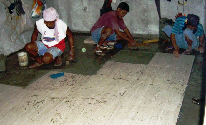 | startin' to lay the floor-tiles |
