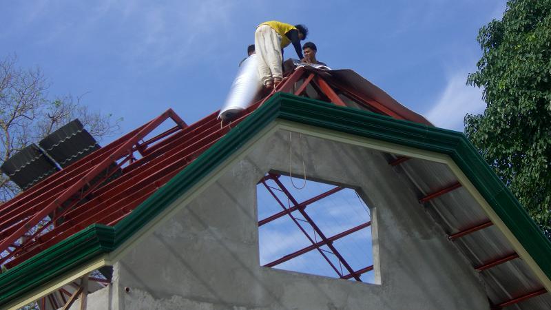 | installing reflective foam insulation under the steel roof-tiles |