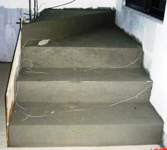 | beginning of the interior stairway, and the unfinished door to the balcony |
