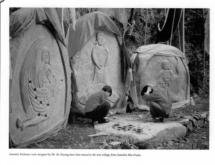 | These Samshin-halmoni rock-icons designed by Dr. Zo have been moved to the new village from Samshin Hoe-gwan.. |