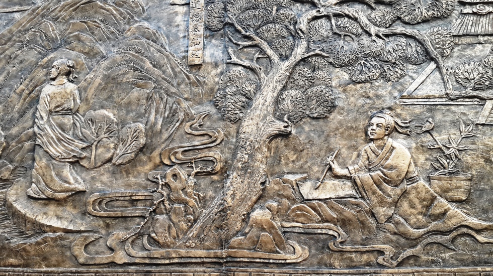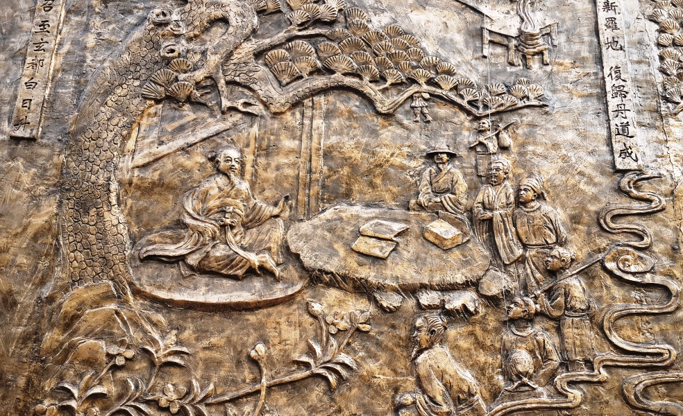 | These large bronze plaques show some biographical scenes from Kim Ga-gi's life; however I don't yet know the tales they depict and am not even sure what order they should be in! |