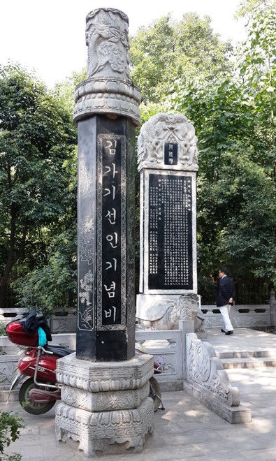| Monuments honoring Master Kim Ga-gi recently established in front of the ancient Louguan-tai Temple. |