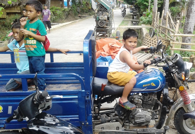 | The very useful new "Chariot" farm-vehicle, capable of carrying big loads on both rough steep mountain-roads and on the national highway -- with master-driver Davayn. |