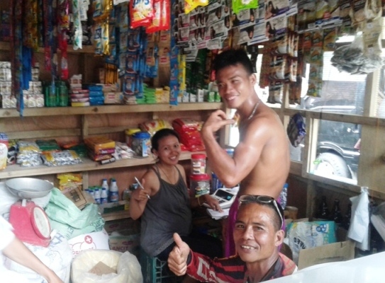 | Myself sharing some San Miguel beer with brother-in-law Selso and our truck-driver Welson, during the Omanod Fiesta on Feb. 22nd 2017 |