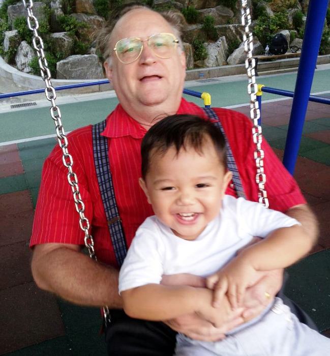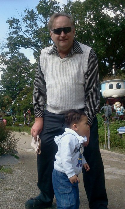 | such a BIG little boy -- with primary nanny Mark, in evening at the waterfront |