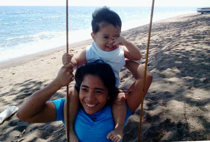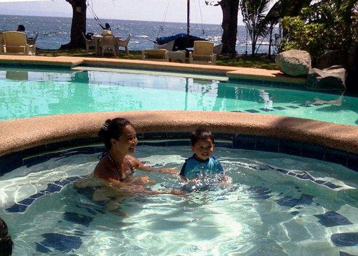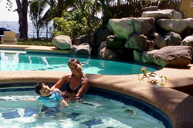 | with mommy in the pool at Mike's Dauin Beach Resort |