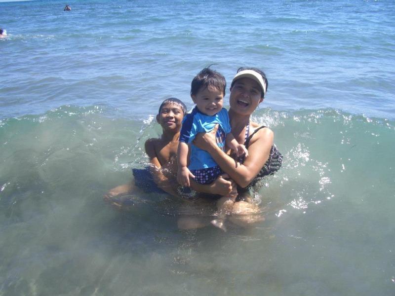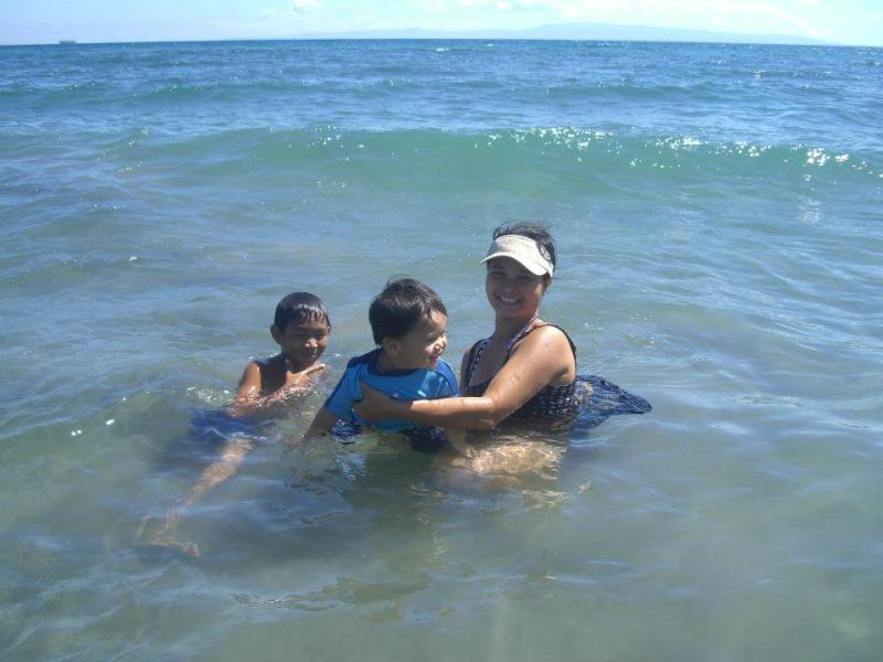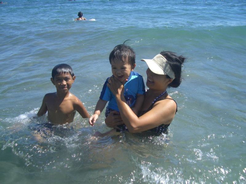| in ocean with Mommy and Kim (an orphaned boy we are putting thru school) |