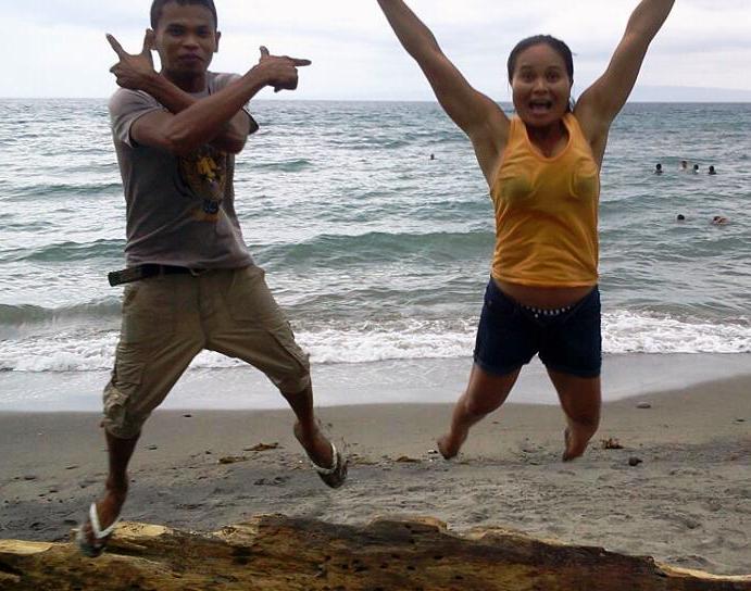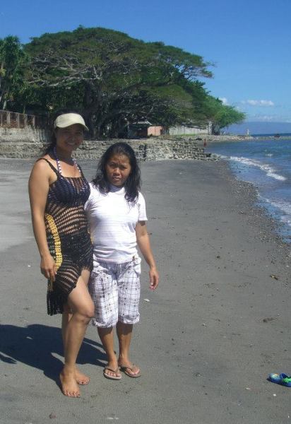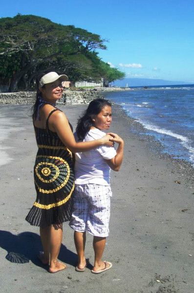 | Mommy Lourdes on the beach (in dress she knitted herself!), with chief housekeeper Deliah |