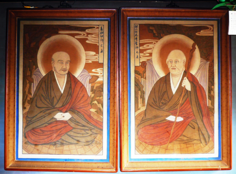 | twin portraits of Korea's most-famous ancient master-monksin their later years: Uisang-daesa (left) and his close friend Wonhyo-daesa (right) from Cheonseong-san |